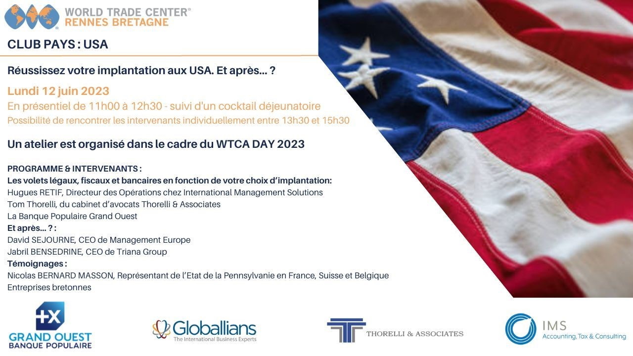 Organisé en format hybride par le WTC Rennes Bretagne en partenariat avec la Banque Populaire Grand Ouest, le réseau Globallians et International Management Solutions, cet atelier a su proposer des interventions de professionnels lors de l’implantation sur le sol américain.