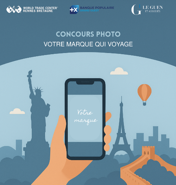 Le World Trade Center Rennes Bretagne, en partenariat avec Le Guen et Associés et la Banque Populaire Grand Ouest, organise un concours photo sur le thème “Votre marque qui voyage”, suivi d’un vernissage inédit avec un atelier exclusif animé par Le Guen et Associés. Cette soirée offrira aux participants l’opportunité de découvrir comment protéger leur marque à l’international tout en profitant d’un moment convivial dans les locaux du WTC Rennes Bretagne en centre-ville de Rennes.