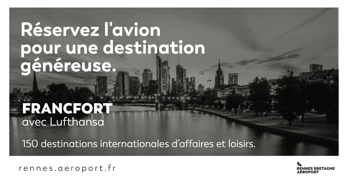 Au-delà de la destination allemande, grâce à cette liaison au hub de Francfort, l’aéroport Rennes Bretagne s’ouvre encore davantage sur l’Europe mais surtout sur le monde. Le hub Lufthansa de Francfort offre aux passagers un réseau de 150 destinations internationales d’affaires et de loisirs vers l’Europe, l’Afrique, les Amériques et les Caraïbes, l’Asie et le Moyen-Orient.