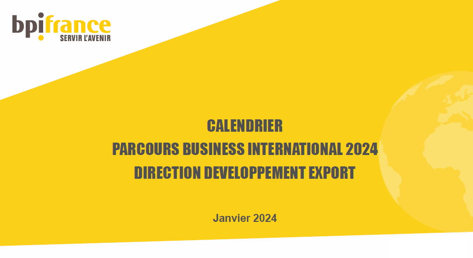 Bpifrance présente son calendrier 2024 des 23 Parcours Business International : Direction Développement Export