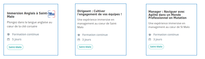 - se former à l’anglais ou au management (une formation anglais et 2 formations management dont une spéciale dirigeants et une autre pour leurs managers)