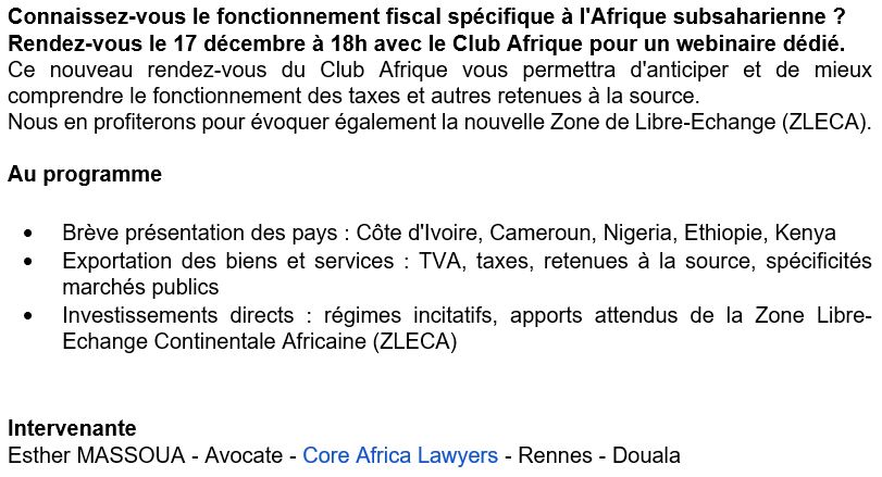 Home / Partenaires / Jeudi 17 décembre de 18h à 20h – Club Afrique / CCI 22 : Tour d’horizon fiscal de vos relations d’affaires en Afrique subsaharienne