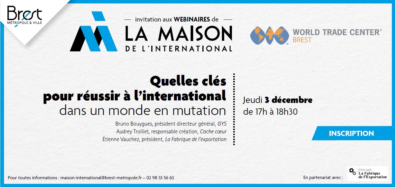 Jeudi 3 décembre 2020 de 17h à18h30, WTC Brest => Quelles clés pour réussir à l’international dans un monde en mutation