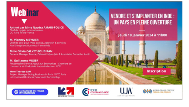 Retour sur le webinar du jeudi 18 janvier 2024 du WTC Paris sur vendre et s’implanter en Inde : un pays en pleine ouverture.
