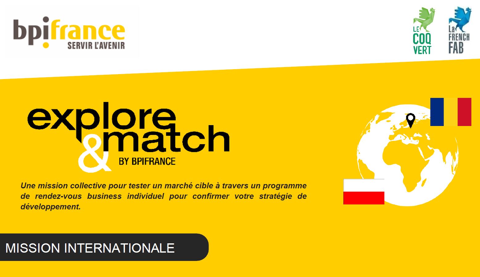 Bpifrance a le plaisir de vous annoncer le lancement de la mission EXPLORE & MATCH : AGRICULTURE – POLOGNE & ROUMANIE, qui se déroulera du 6 au 10 novembre 2023. Organisé en partenariat avec Business France, cette mission de 5 jours combinant visites collectives et programme de RDV B to B, cible des PME & ETI françaises.