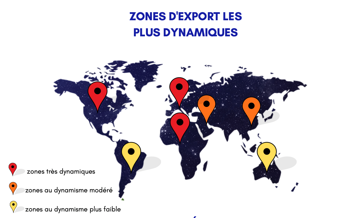 Ci-dessous un extrait des zones d’export les plus dynamiques :