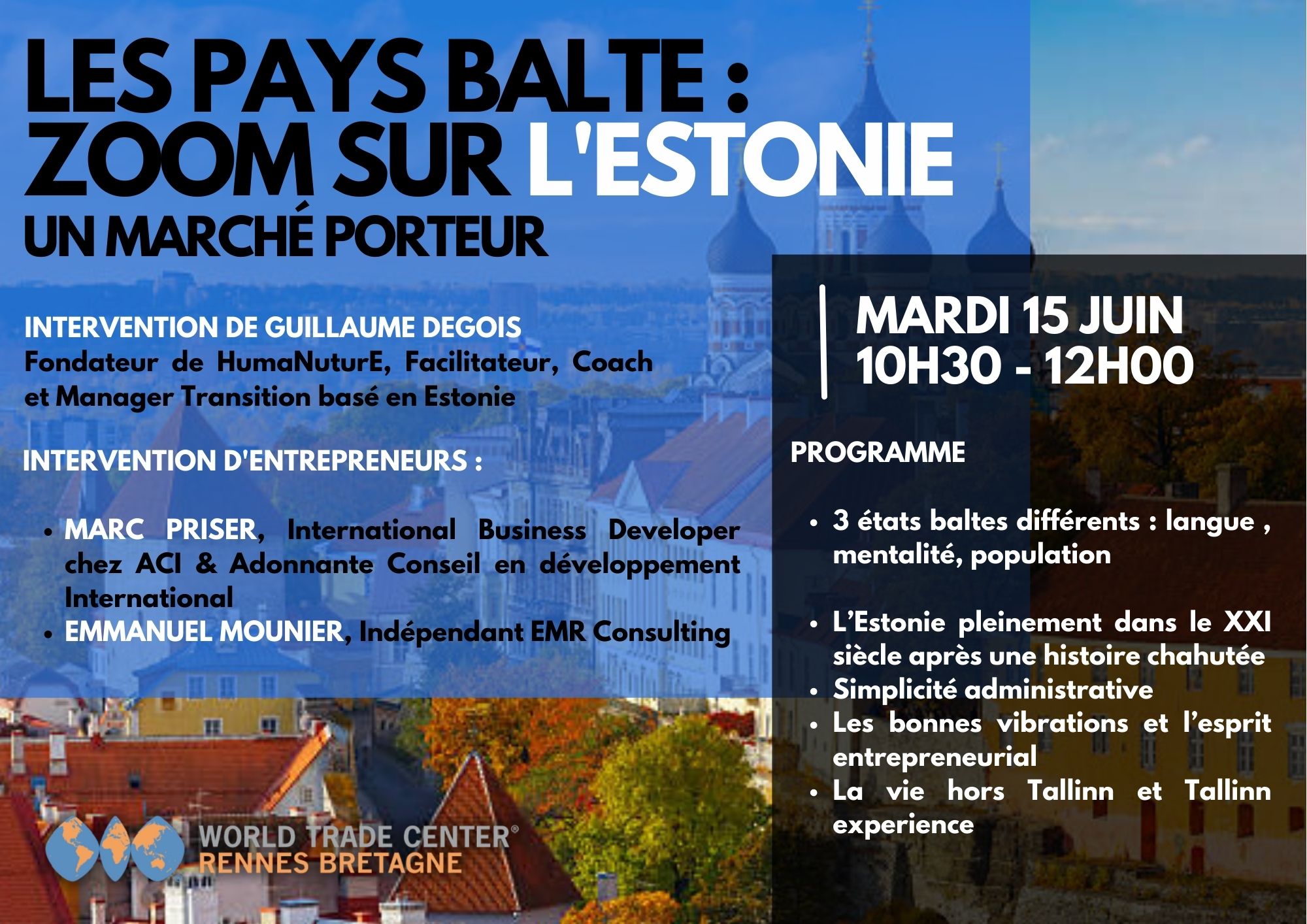 Le mardi 15 juin dernier a eu lieu une visioconférence sur Les Pays Baltes – Zoom sur l’Estonie : Un marché porteur. Cette visioconférence avait pour objectif d’avoir un panorama des 3 états baltes et un zoom sur l’Estonie : une économie à la pointe du 21ème siècle.
