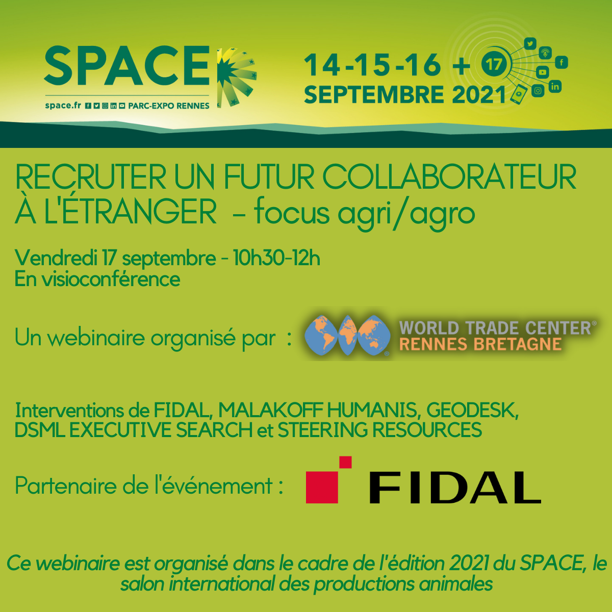 Dans le cadre de l’édition 2021 du SPACE, le WTC Rennes Bretagne vous a proposé un atelier en visioconférence sur le recrutement de collaborateurs à l’étranger en partenariat avec le Cabinet Fidal. Lors de cette intervention, nous nous sommes focalisés sur le secteur de l’agri/agro et ont tenté de répondre aux questions qu’il est essentiel de se poser lors du processus de recrutement d’un collaborateur à l’étranger.