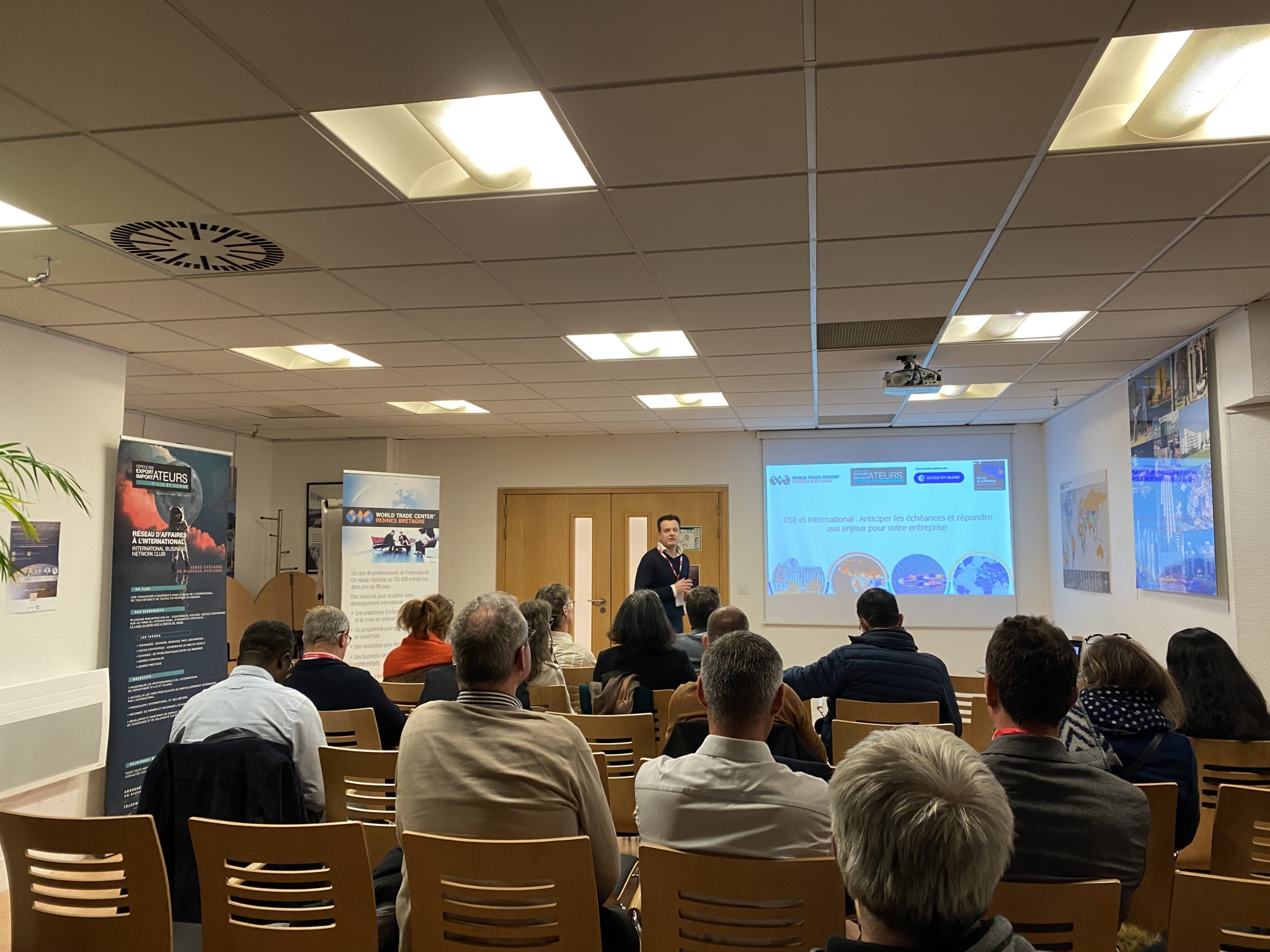 Le WTC Rennes Bretagne, le Cercle des Exportateurs et Importateurs d’Ille-et-Vilaine et le CAFA Rennes Bretagne ont eu le plaisir d’organiser l’atelier « RSE et international : Anticiper les échéances et répondre aux enjeux pour votre entreprise » le mardi 10 décembre 2024.