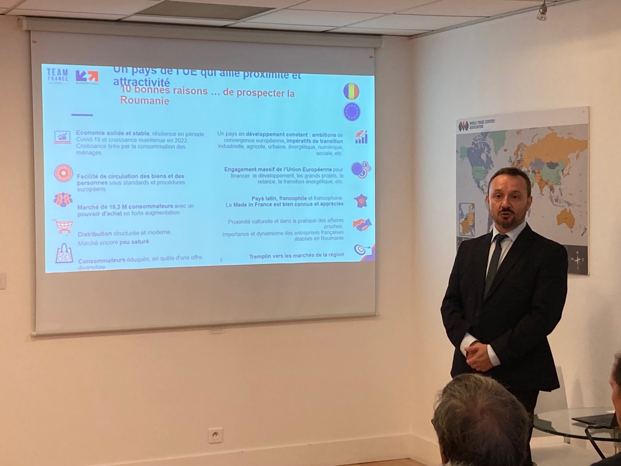 Dans le cadre de ses ateliers pays, le WTC Rennes Bretagne a eu le plaisir d’organiser un nouvel événement mettant en avant l’attractivité de la Roumanie. Nous avons eu l’honneur d’accueillir et d’écouter S.E. Mme Auer, ambassadrice de France en Normandie, M. François Matraire Directeur pays Business France, ainsi que le témoignage de Guillaume DESPAGNE, CEO de l’entreprise ARIADNEXT.
