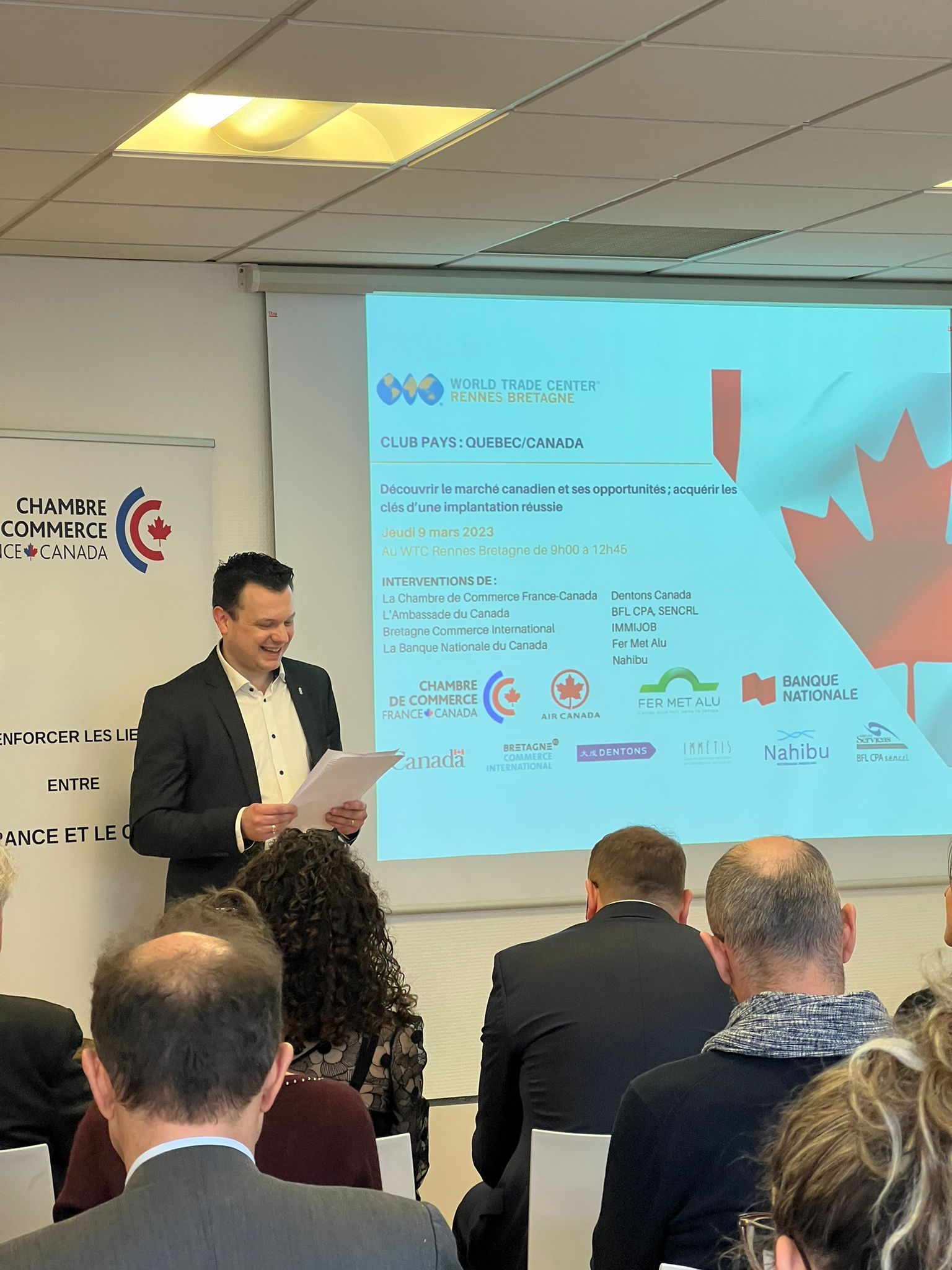 Dans le cadre des activités de son Club Québec/Canada, le WTC Rennes Bretagne a eu le plaisir de convier son réseau à une animation autour du marché canadien, organisée par la Chambre de Commerce France Canada en partenariat avec la Banque Nationale du Canada et l’entreprise FER MET ALU.