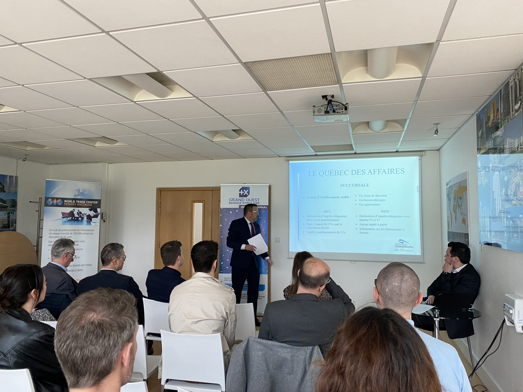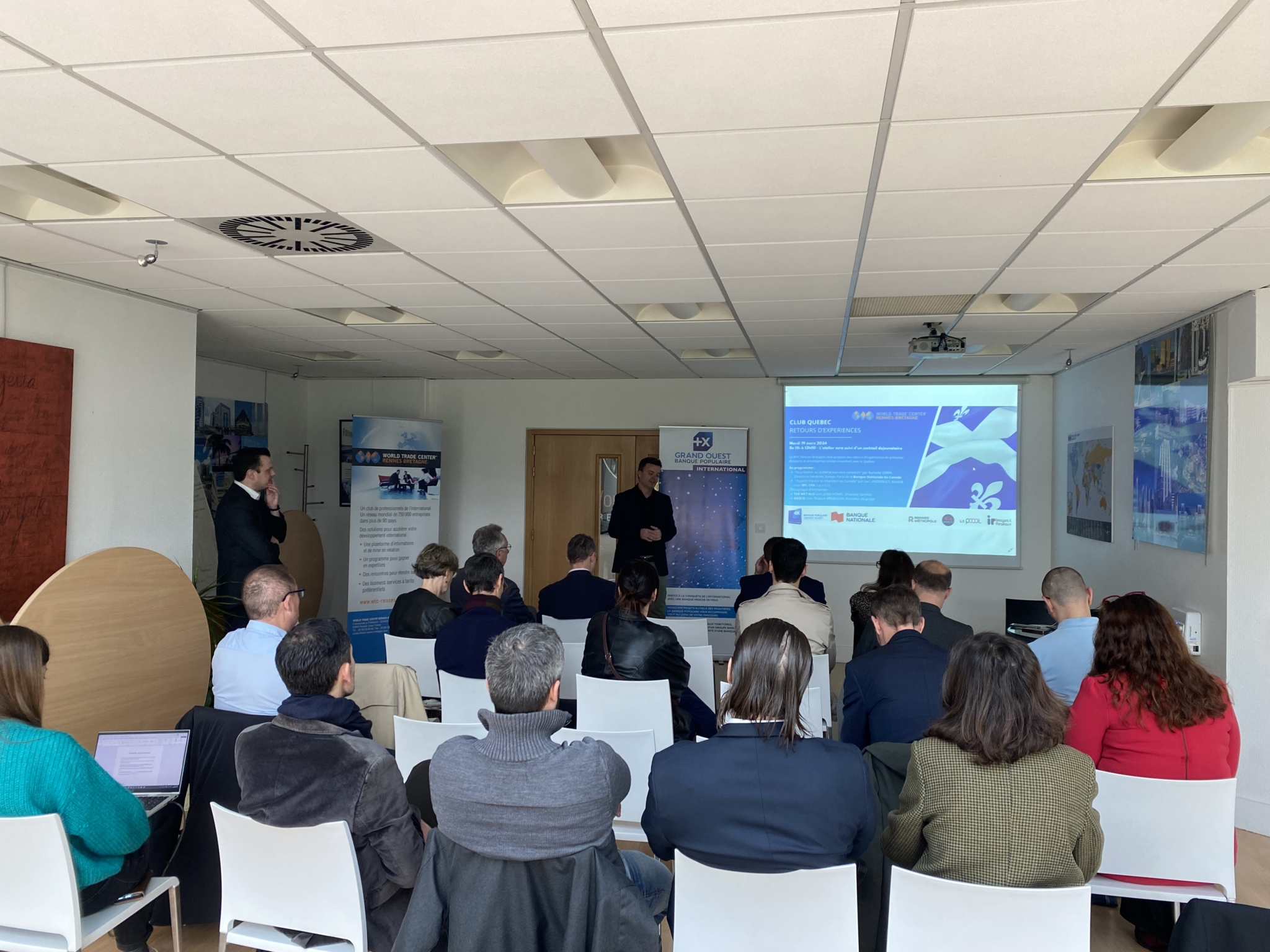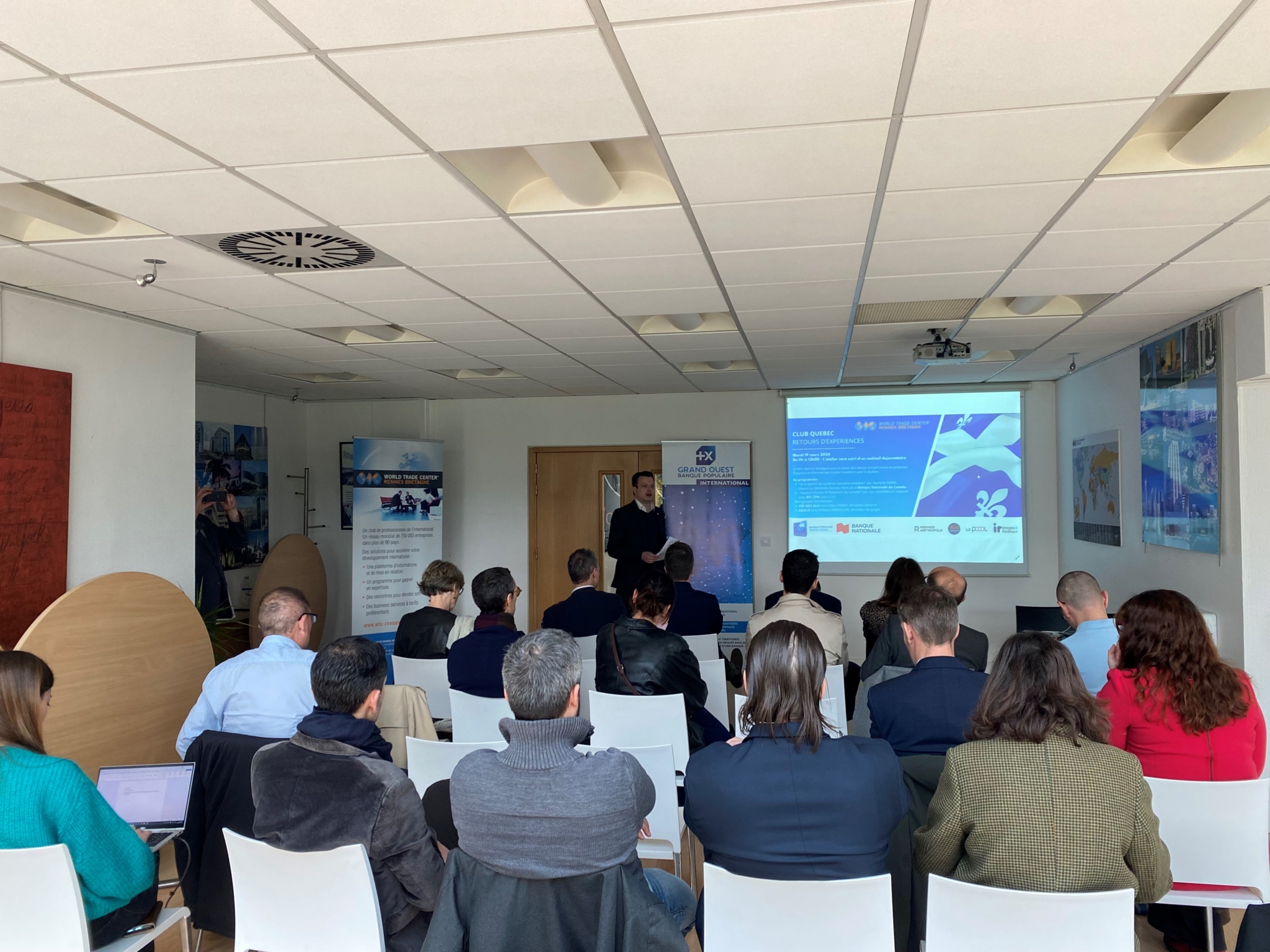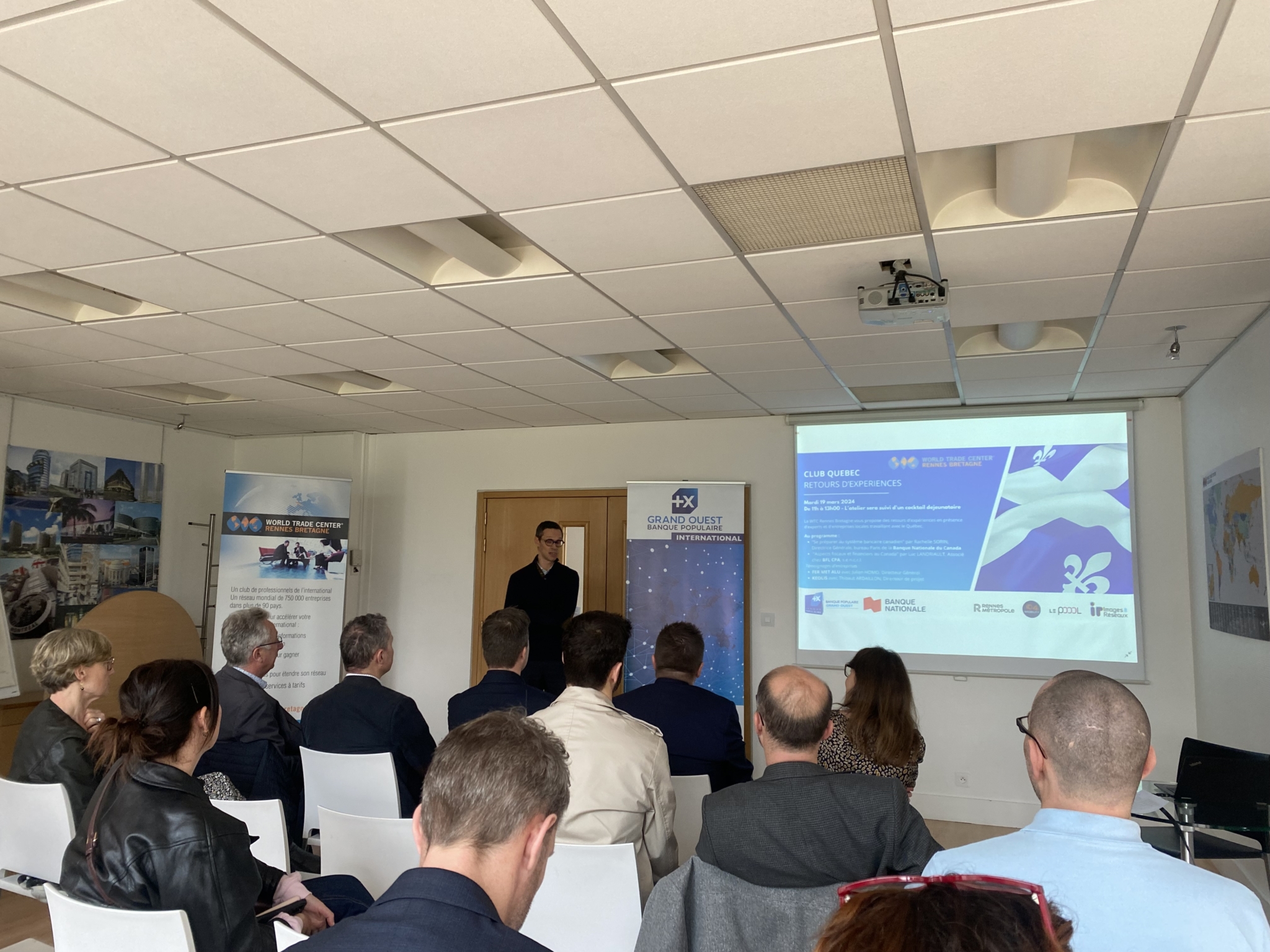Dans le cadre des activités de son Club Québec/Canada et en préparation de la prochaine mission menée par Rennes Métropole au Québec en avril 2024, le WTC Rennes Bretagne a eu le plaisir de vous convier à une nouvelle animation sur le marché québécois mardi 19 mars dernier dans les locaux de la CCI Ille-et-Vilaine. Cet événement était organisé par Rennes Métropole, ID4MOBILITY, le Pôle Images & Réseaux, Le POOOL et le WTC Rennes Bretagne. Nous remercions nos partenaires la Banque Populaire Grand Ouest et la Banque Nationale du Canada.